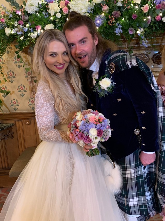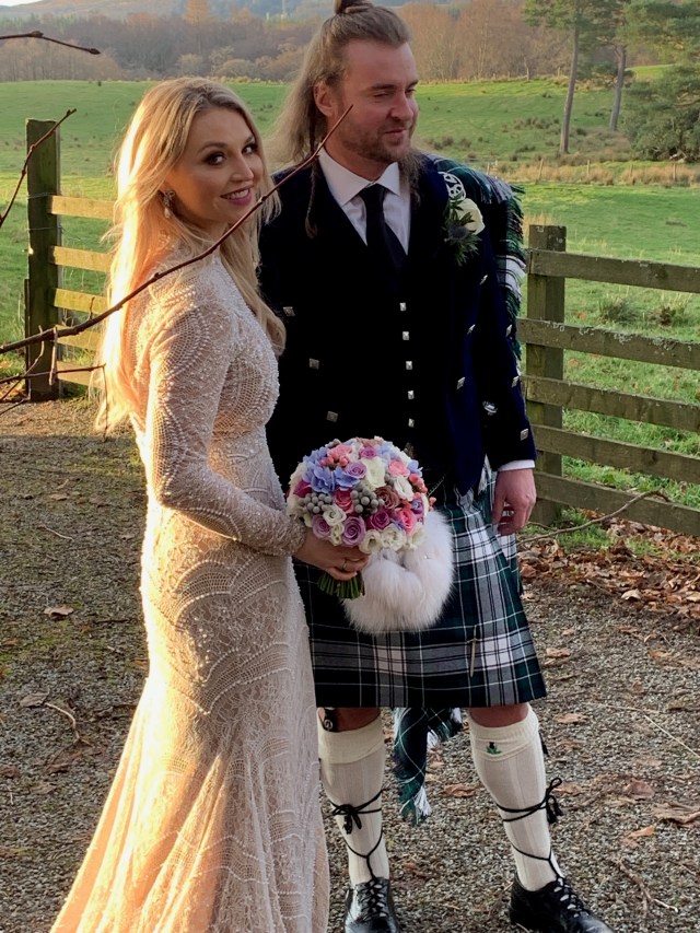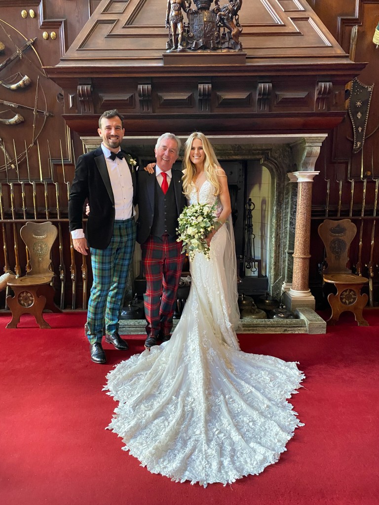 Jojo and Chris’s wedding was the poshest of posh affairs. The majority of the men wore their trews or kilts with black tie and the women were in their finery – though none could eclipse Jojo.