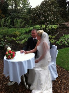 Even last Sunday it was beautiful. The weather was dubious, it had been very showery in the morning. Showery as in stair rods showery, and my heart fell for poor Vicki. But as I drove over the rain slowed it dried up, and as I arrived I noticed the staff carrying the chairs across the path and up the hill to the John Muir Grove. Gavin had taken an executive decision to move the wedding outside and a good call it was as well.